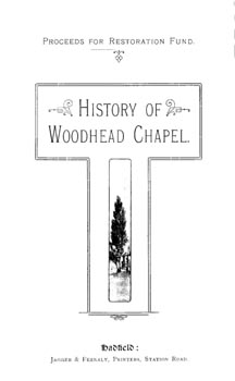 This booklet, History of Woodhead Chapel (in PDF format) was sent to me by Sue Ledbrooke, who wanted it to have a good home. It had that here with me and on my website. My thanks to her for her kindness. The latest date in the booklet is 1905 so it was published after that date. In January 2019, I passed on the booklet so that it could take its place in an historical display case at the Glossop Conservative Club function room, renovated to its original glory, containing several pieces of local memorabilia, War records, Flags and Brass articles from local historical societies. In fact the building it self has been recognised for its historical importance and has blue plaque recently applied for, outside. The booklet will certainly be at home there, and — hopefullly — will be on display for many years. Should you have any further information about the booklet, I'd be delighted to hear from you. |