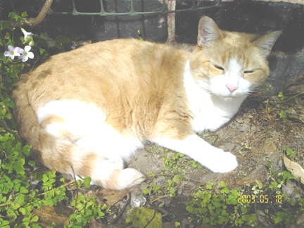 This is my much loved little ginger "tripod". She had her left front leg amputated in 1992, when she was two years old. She slowed down considerably during her last couple of years - but she was an old lady. She was the first to arrive, as a "Christmas gift" . She was followed by Wellington, who came in through the cat flap; then Raq arrived. Suzie appeared to be pining for Raq and then she had a seizure; she took her last journey on 17 November 2005. In October 2007, Cleo arrived as our "lady in residence", followed in June 2008 by Magnet, another black Labrador. |